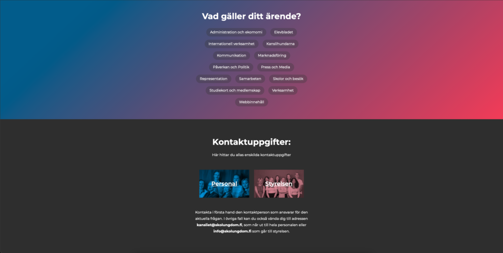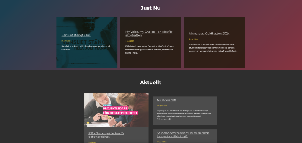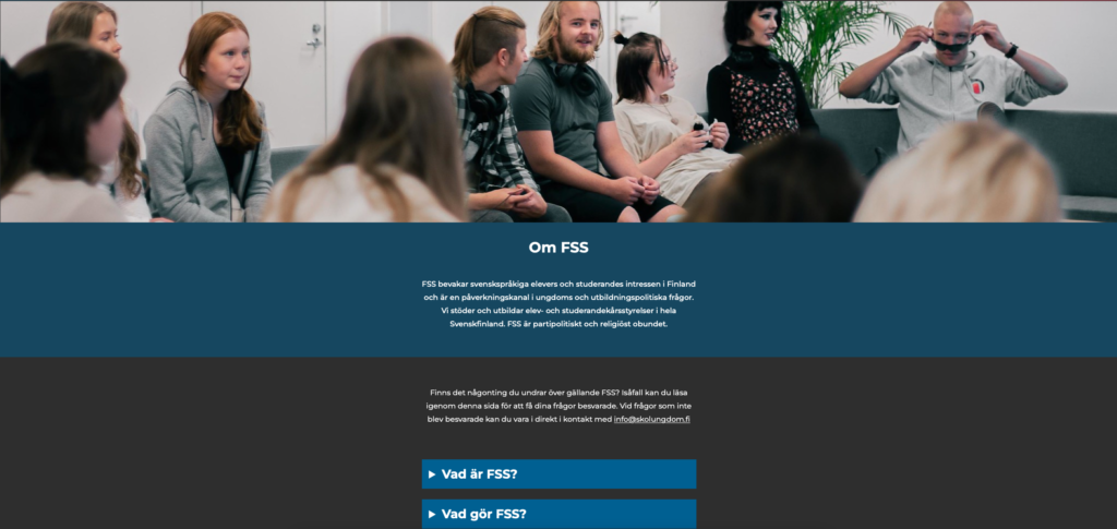During the spring 2024 I developed a brand new website for my current workplace Finlands Svenska Skolungdomsförbund FSS r.f. (Finland’s Swedish-speaking School-youth Association FSS). This project also served as my final production for my studies in Online Media at Arcada UAS.