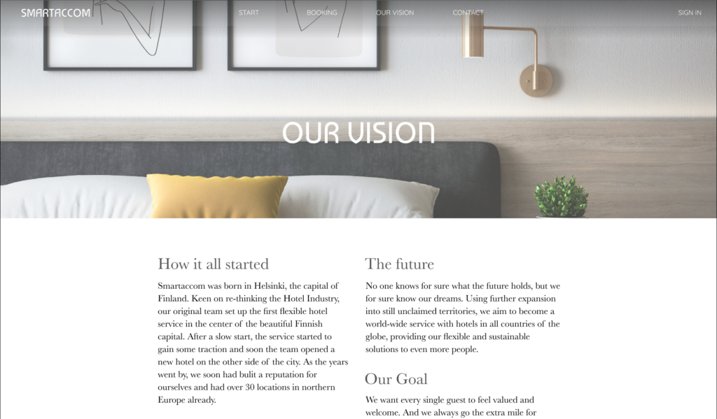 Smartaccom is a fictional smart hotel service focusing on flexibility and rethinking hotel accomodation.